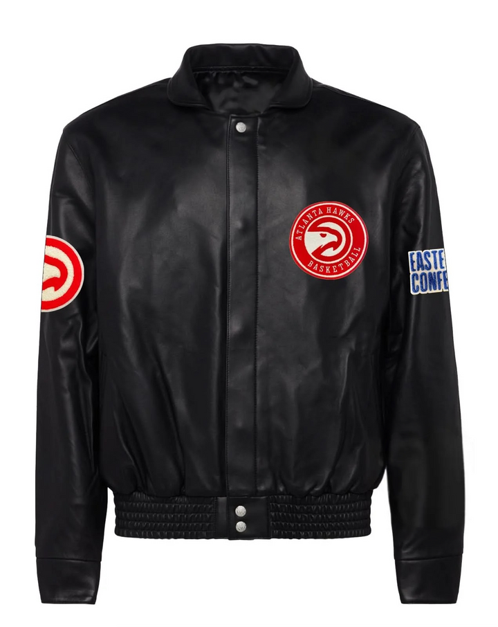 Constructed from premium full-grain leather, this Atlanta Hawks jacket represents exceptional craftsmanship for the dedicated basketball enthusiast. Features authentic team colorway, precision Hawks emblems, and technical construction elements including reinforced stress points and strategic interior lining. The professional-grade design incorporates advanced panel construction for optimal mobility and fit retention. Engineered to develop a distinguished patina while maintaining structural integrity through years of wear, delivering superior performance for the discerning NBA fan.
