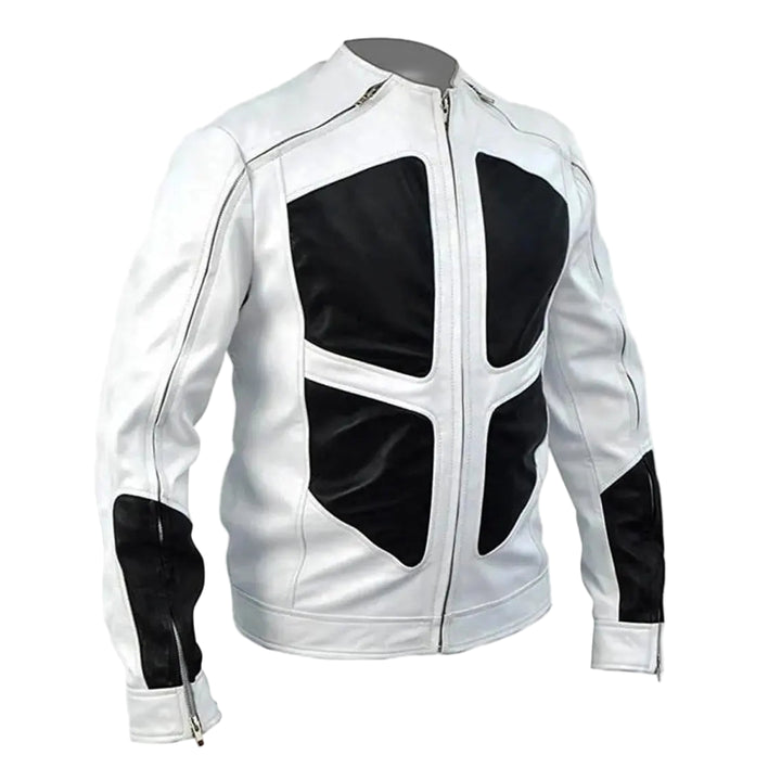 The Black & White Leather Biker Jacket delivers a striking contrast design crafted from high-quality leather for durability and style. Engineered with reinforced stitching and a tailored fit, it offers both comfort and resilience for everyday wear or riding. This jacket balances classic biker aesthetics with modern detailing, making it a versatile choice for those seeking a sophisticated yet bold outerwear option.