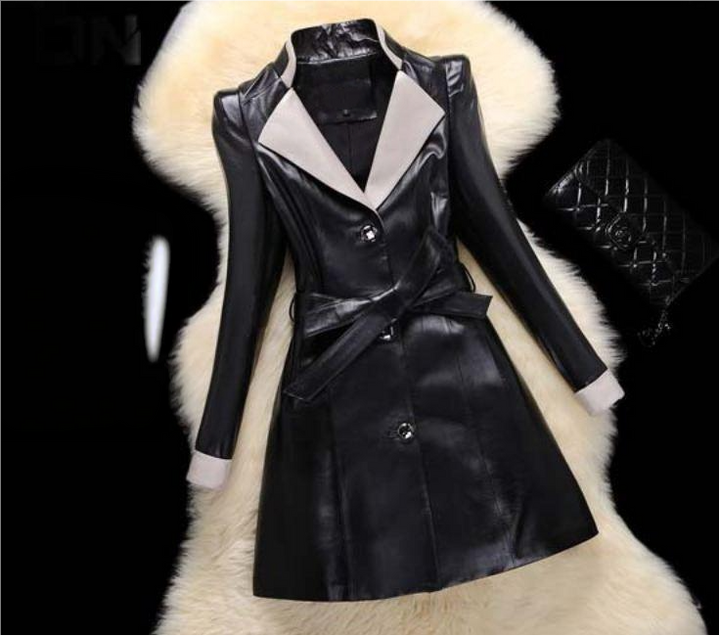 Girls Leather Overcoat Winter Sheepskin Long Slim Black Jackets
