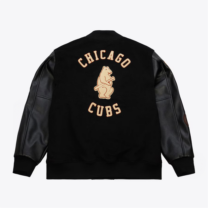 Show your Chicago Cubs pride with the Black Out Collection Vintage Logo Full-Snap Varsity Jacket. Featuring embroidered twill patches and chenille fabric applique logos, this jacket captures the team's storied history with a retro vibe. Made from a warm wool blend with a quilted lining, it's perfect for staying cozy on chilly game days while showcasing your classic Cubs style.
