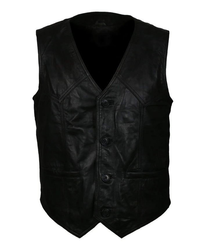 Men's Skull Black Motorcycle Genuine Leather Vest