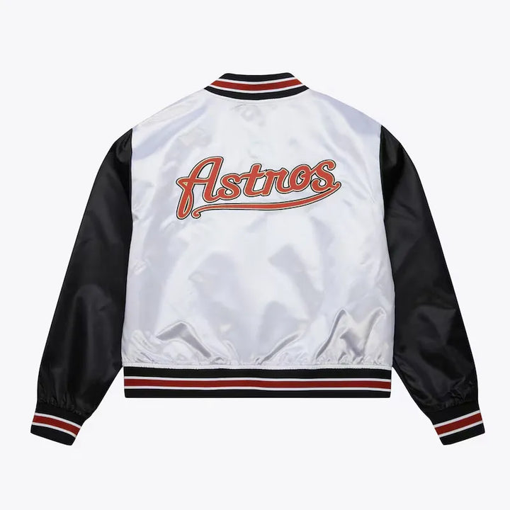 Women’s Houston Astros Cropped White and Black Satin Jacket