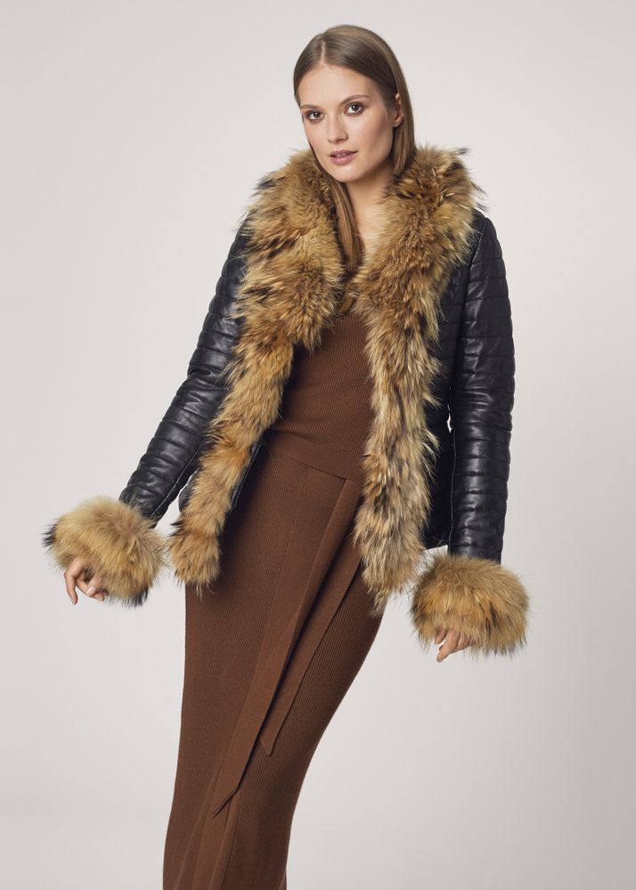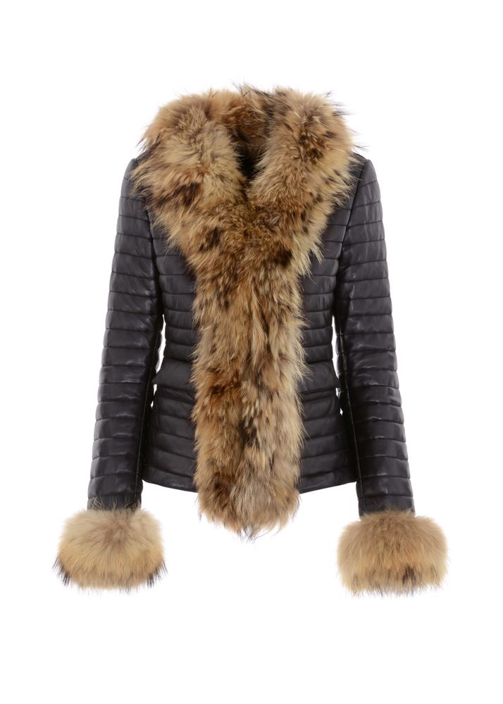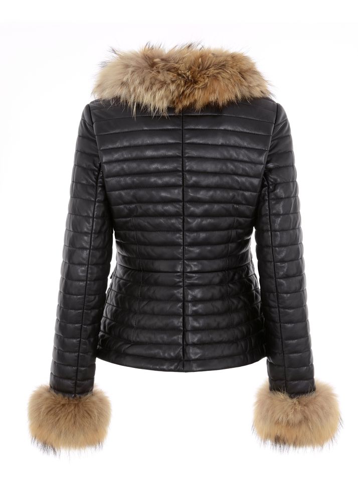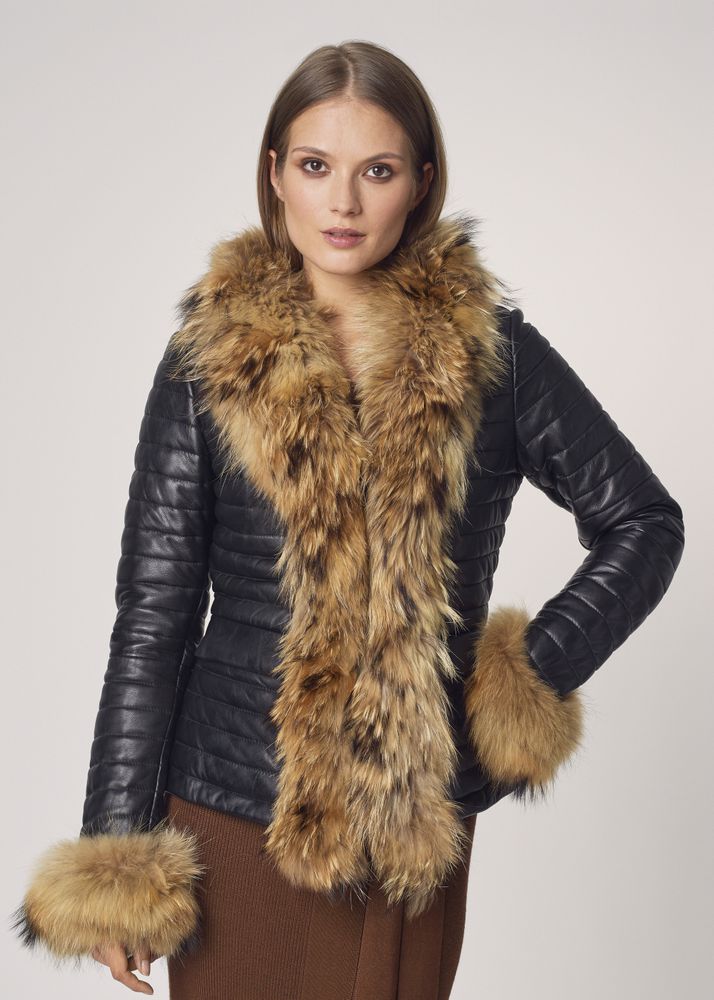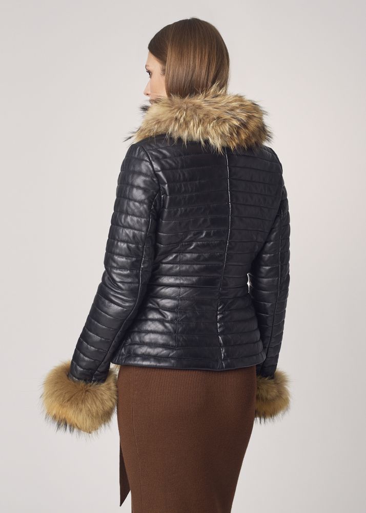 Women's black jacket in the form of a jacket. Made of natural leather. A very feminine, classic and elegant model . Faux fur elements give it a luxurious character . The jacket looks good both with trousers and a skirt.