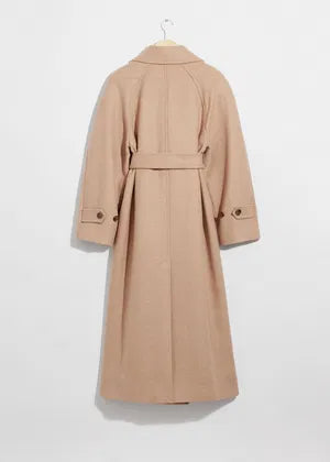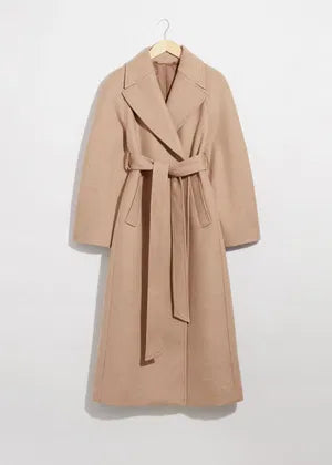 Cozy belted wool-blend overcoat with wide lapels in USA