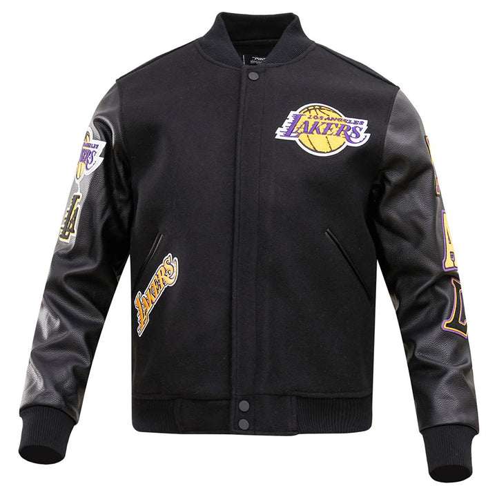 Classic Los Angeles Lakers Wool/Leather Varsity Full-Zip Black/Brown Jacket