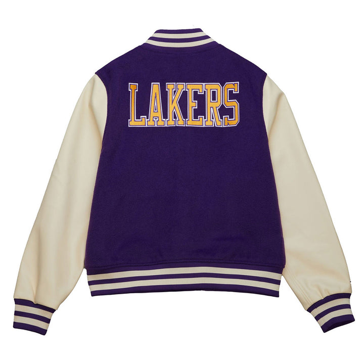 Los Angeles Lakers Purple/Off White Full-Snap Wool/Leather Varsity Jacket