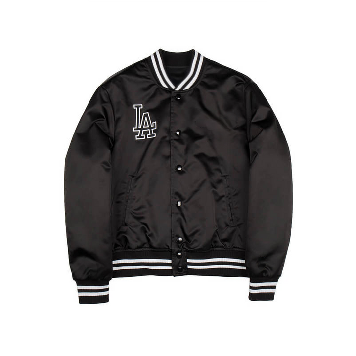 Turn heads with the ultra-sleek LA County Black Satin Bomber Jacket. Featuring the iconic “LA” logo on the chest and bold “COUNTY” lettering on the back, this jacket blends timeless varsity vibes with a modern streetwear edge. Crafted from premium satin with ribbed collar, cuffs, and waistband, it delivers all-day comfort and sharp style. Whether you're repping LA pride or upgrading your outerwear game, this jacket is your go-to for statement layering.
