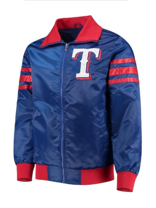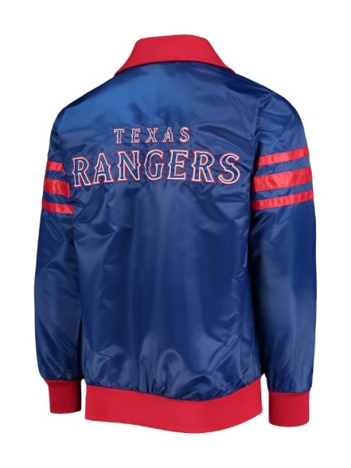 Make a bold statement with this Texas Rangers Satin Jacket, crafted from premium satin for a glossy finish and modern comfort. It showcases the iconic team colors and bold embroidered graphics, capturing the spirit of true Rangers fandom. Ideal for game days or casual wear, this jacket adds a vintage touch to any outfit.