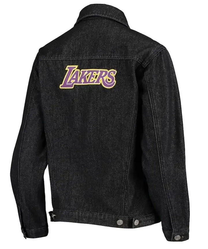 Back View NBA Denim Los Angeles Lakers Black Jacket