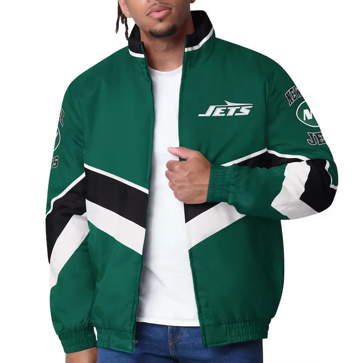 Show your loyalty in warmth and style with the New York Jets Full-Zip Puffer Jacket by TJS. Designed for both men and women, this versatile outerwear piece is perfect for chilly game days, city strolls, or outdoor adventures. It blends modern puffer comfort with bold New York Jets identity.