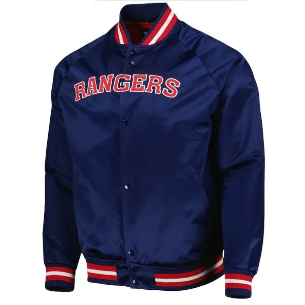 Shop NY Rangers Bomber Navy Blue Satin Jacket