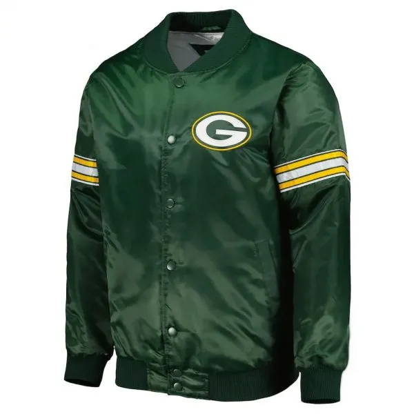 Discover the ultimate combination of style and comfort with the Green Bay Packers Green Jacket, exclusively from The Jacket Seller. This branded jacket is expertly crafted from premium satin material, paired with a smooth quilted inner lining for exceptional comfort and durability.