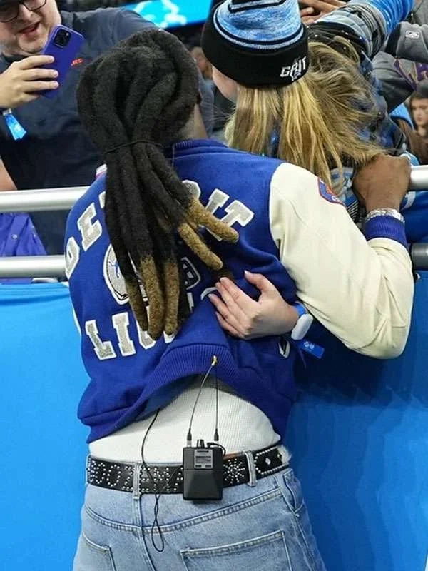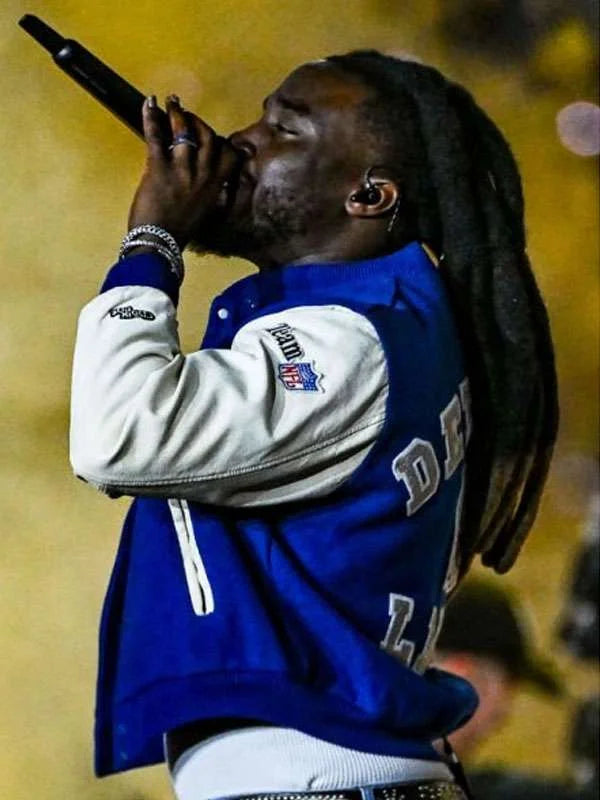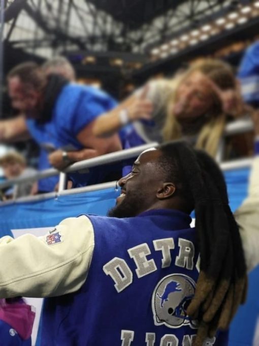 Step into the spotlight with the Shaboozey Detroit Lions Jacket, a bold blend of team spirit and celebrity flair. Worn by rapper and style icon Shaboozey during the Detroit Lions Thanksgiving Halftime Show, this statement piece embodies the perfect fusion of fashion, fandom, and performance.