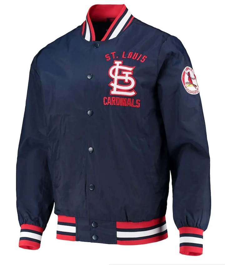 Make a statement this season with the St. Louis Cardinals The Jet III Navy Jacket, a bold fusion of team pride and street-ready fashion. Made from premium satin fabric, this sleek jacket comes in a rich navy blue base with red accents, delivering a classic yet eye-catching aesthetic that captures the spirit of Cardinals baseball.
