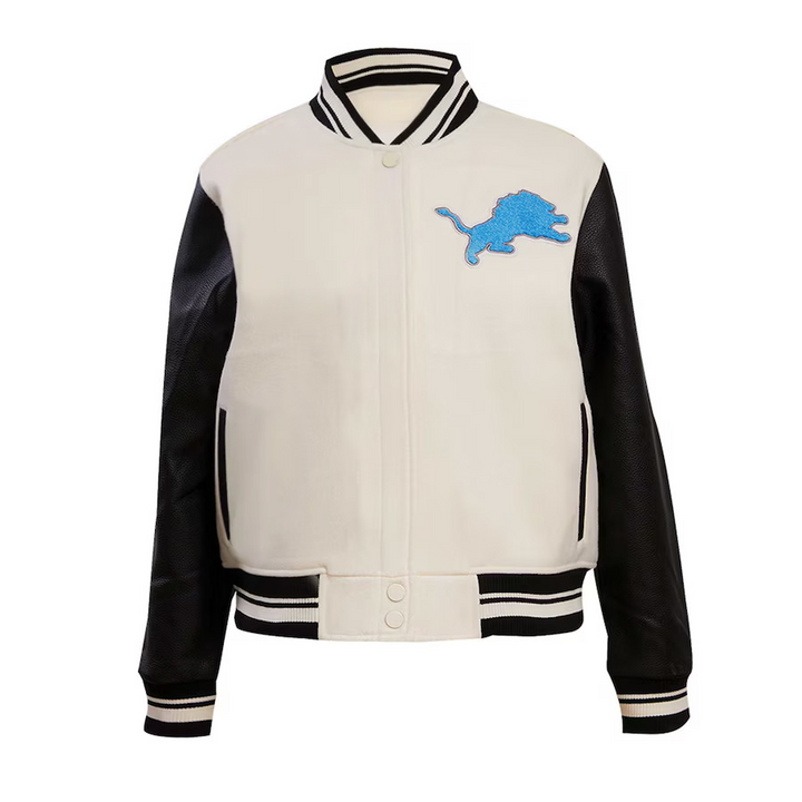 Step out in style with the Detroit Lions Wool Jacket in Black. Designed for fans who want a sleek, minimal look, this jacket combines classic varsity vibes with premium wool warmth.
