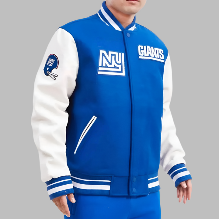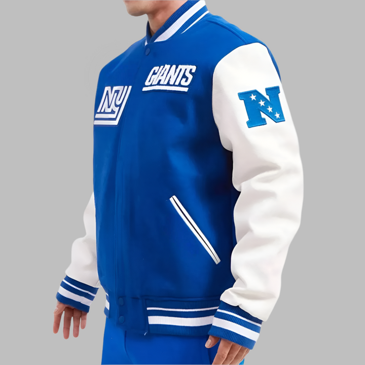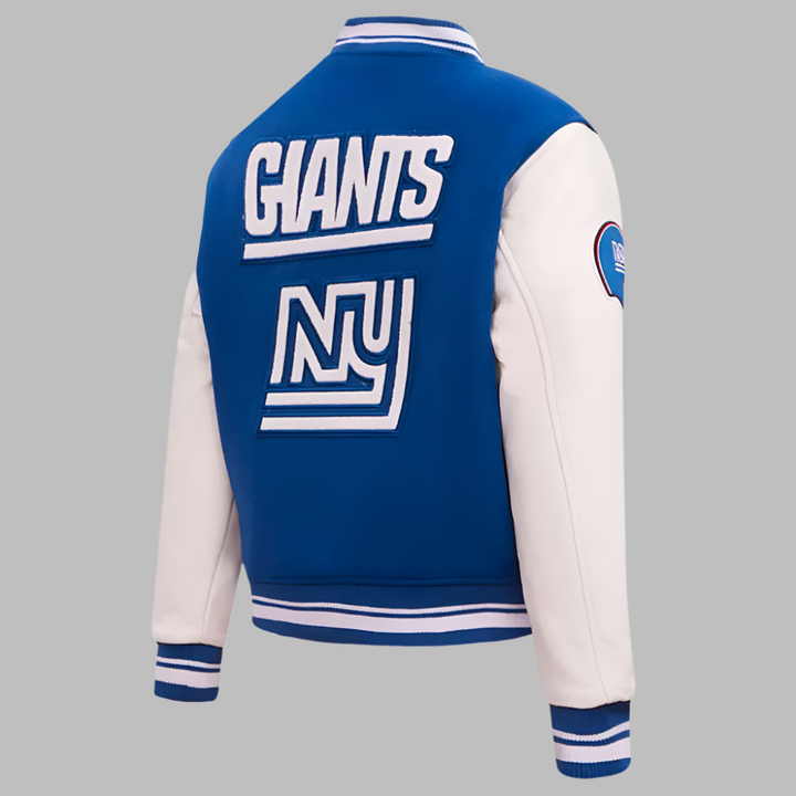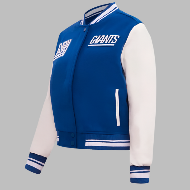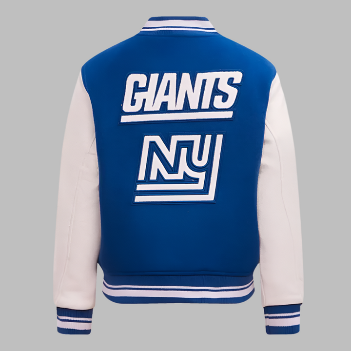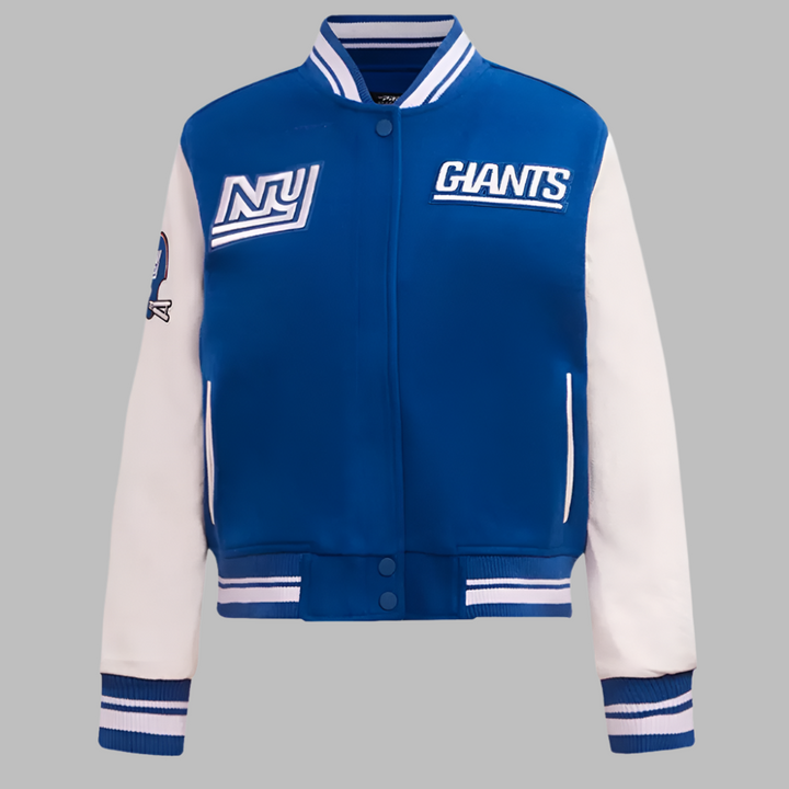 Stay warm and stylish in the NFL NY Giants Varsity Jacket, designed for both men and women. This jacket features the iconic Giants logo and colors, making it perfect for showing off your team pride. With a classic varsity jacket design, this piece is a must-have for any football fan.
