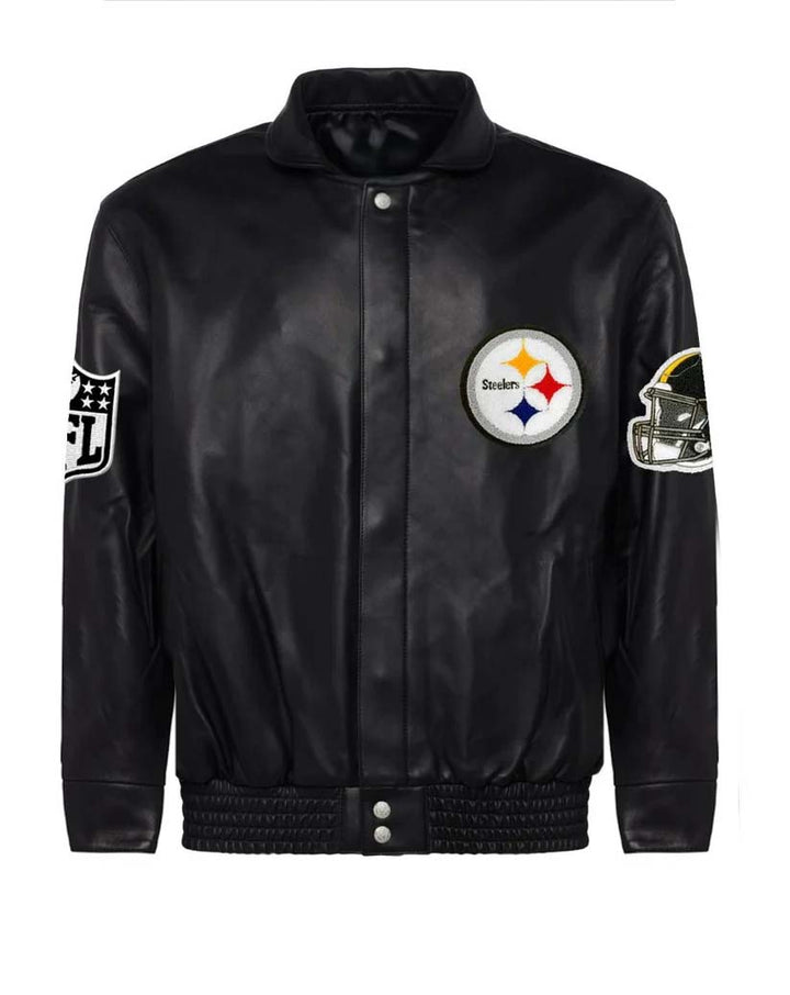 Experience unbeatable style and comfort with our PITTSBURGH STEELERS full leather jacket in black. This expertly crafted jacket features the iconic on the front, showcasing your team pride. Made with high-quality leather, this jacket will keep you warm and stylish all season long.