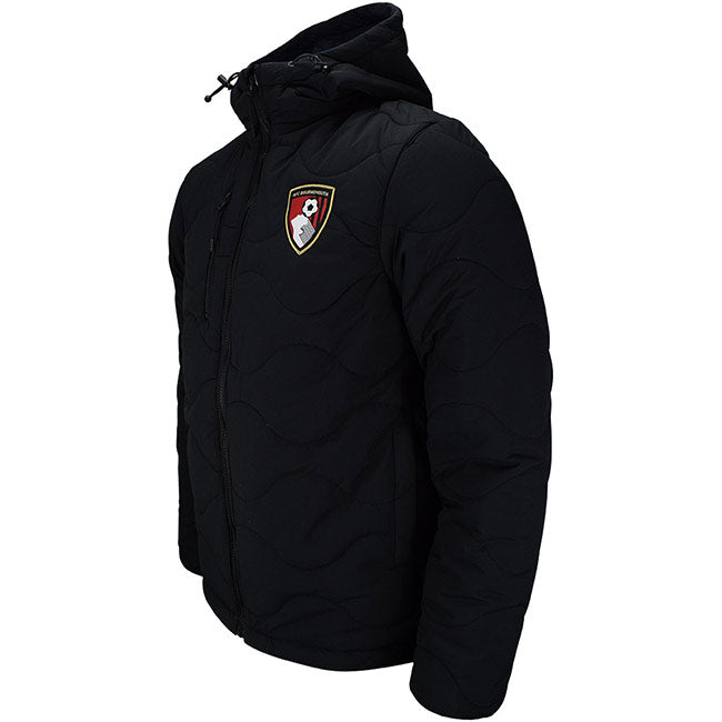 Keep your young fan warm and stylish with the Steeple Youth Jacket – Black, designed for both boys and girls who love AFC Bournemouth. This smart quilted jacket combines everyday practicality with a sleek look, featuring warm quilted padding and a padded hood to protect against cold weather.