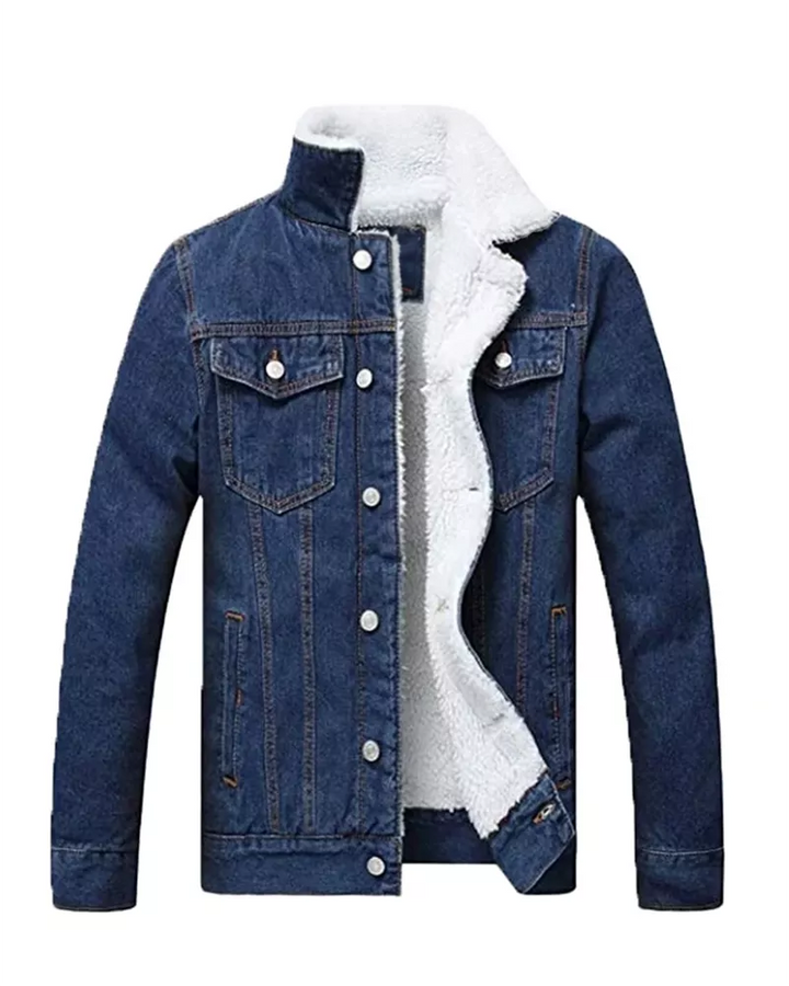 Shop Blue Shearling Denim Jacket – Winter Casual Outerwear