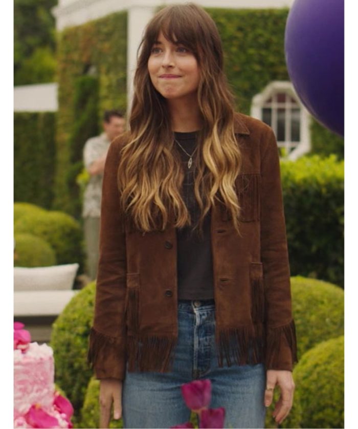 Dakota Johnson Rocks High Note Suede Leather Jacket with Style in USA market