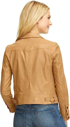Premium Women's Casual Stylish Biker Light Brown Leather Jacket