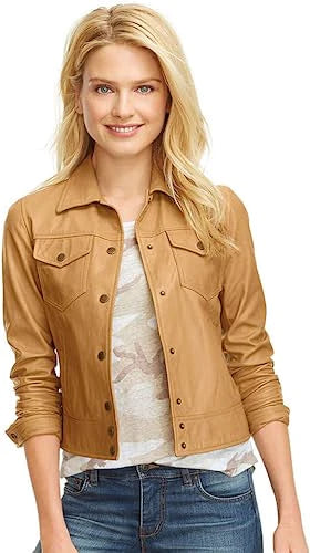 Add effortless cool to your wardrobe with this women’s casual light brown biker leather jacket. Featuring a flattering fit, classic asymmetrical zip, and durable leather construction, it’s perfect for everyday wear with a touch of moto-inspired attitude.