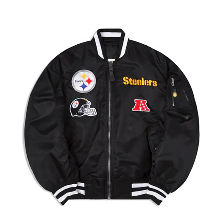 Black Pittsburgh Steelers MA-1 Bomber Jacket
