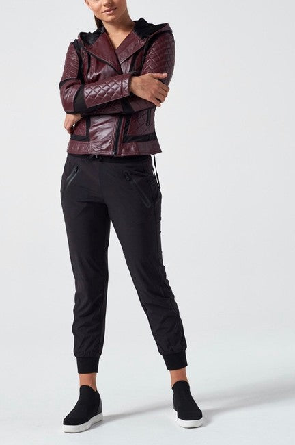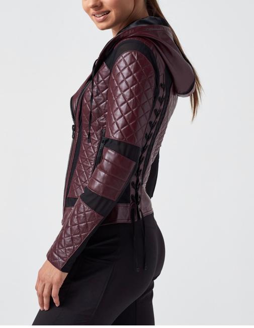 If you're looking to channel Taylor Harding's bold style from Why Women Kill, portrayed by Kirby Howell-Baptiste, the quilted biker jacket she wears is a standout piece. This maroon leather jacket combines edgy biker aesthetics with a sophisticated quilted design, making it a versatile addition to any wardrobe