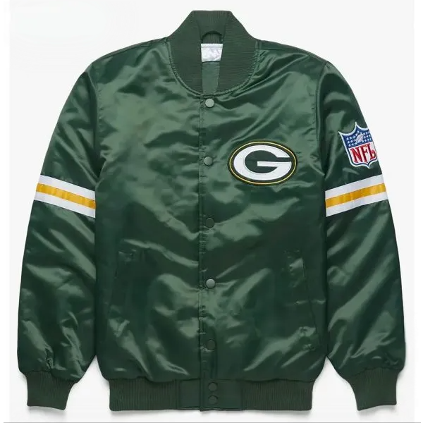 Discover the ultimate combination of style and comfort with the Green Bay Packers Green Jacket, exclusively from The Jacket Seller. This branded jacket is expertly crafted from premium satin material, paired with a smooth quilted inner lining for exceptional comfort and durability.