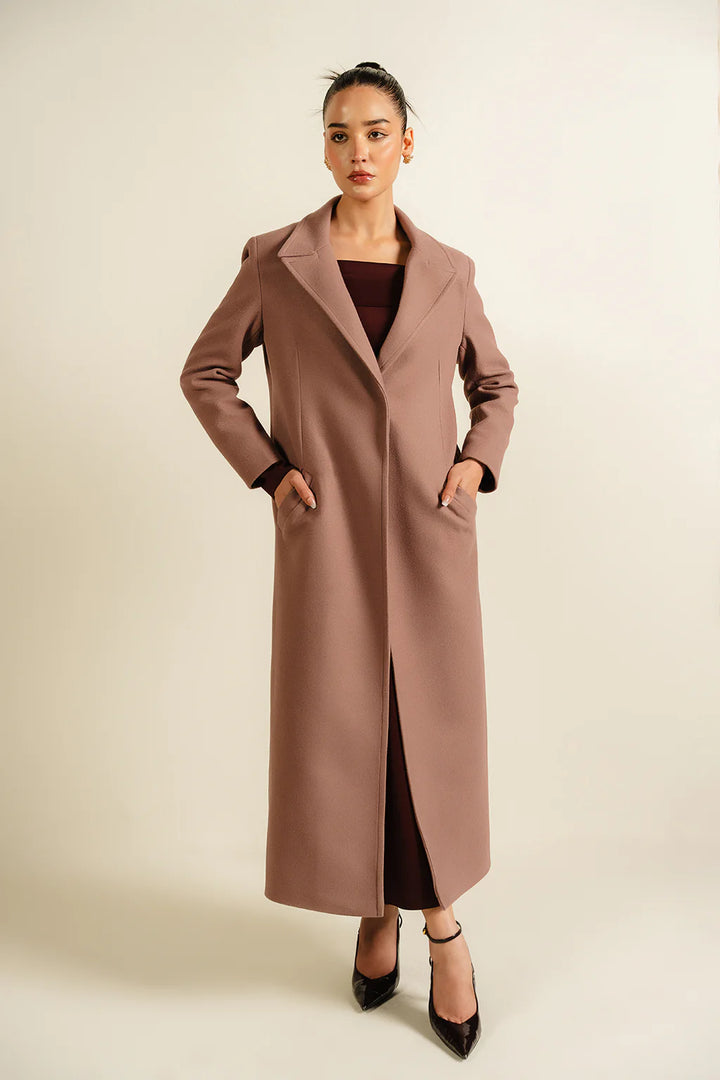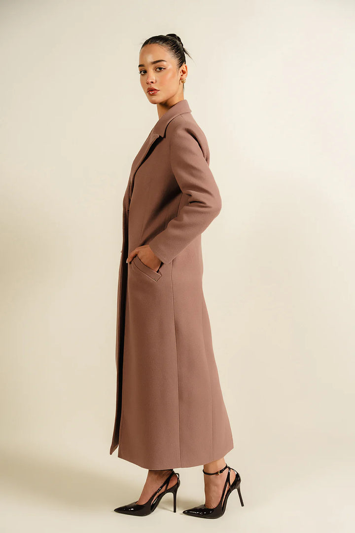 This long coat in a elegant dusty pink hue is the perfect addition to your wardrobe. Made with high-quality materials, it will keep you warm and stylish all season long. The classic design and versatile color make it a must-have for any fashion-forward individual. Stay comfortable and chic with this long coat.