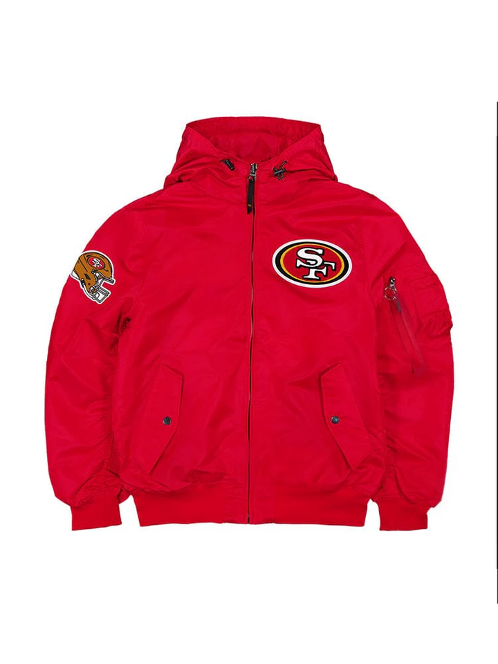 Rep the 49ers in style with the San Francisco 49ers L-2B Bomber Jacket. Crafted from durable nylon with ribbed trims, this jacket features team logos and a lightweight build—perfect for year-round game days.