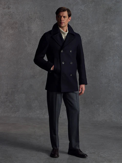 Introducing the Peacoat - a timeless classic with modern updates. Made with premium wool-blend fabric and a comfortable fit, this peacoat will keep you warm and stylish all winter long. Featuring a sleek design and functional pockets, this peacoat is the perfect combination of fashion and function. Elevate your winter wardrobe with the Peacoat.