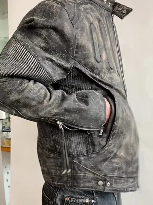 Unleash your inner trendsetter with the Travis Scott Juntae Kim Leather Jacket, a bold fusion of avant-garde fashion and raw street energy. Styled by the visionary Juntae Kim and inspired by Travis Scott’s fearless aesthetic, this distressed grey biker jacket turns heads with its edgy attitude and premium craftsmanship.